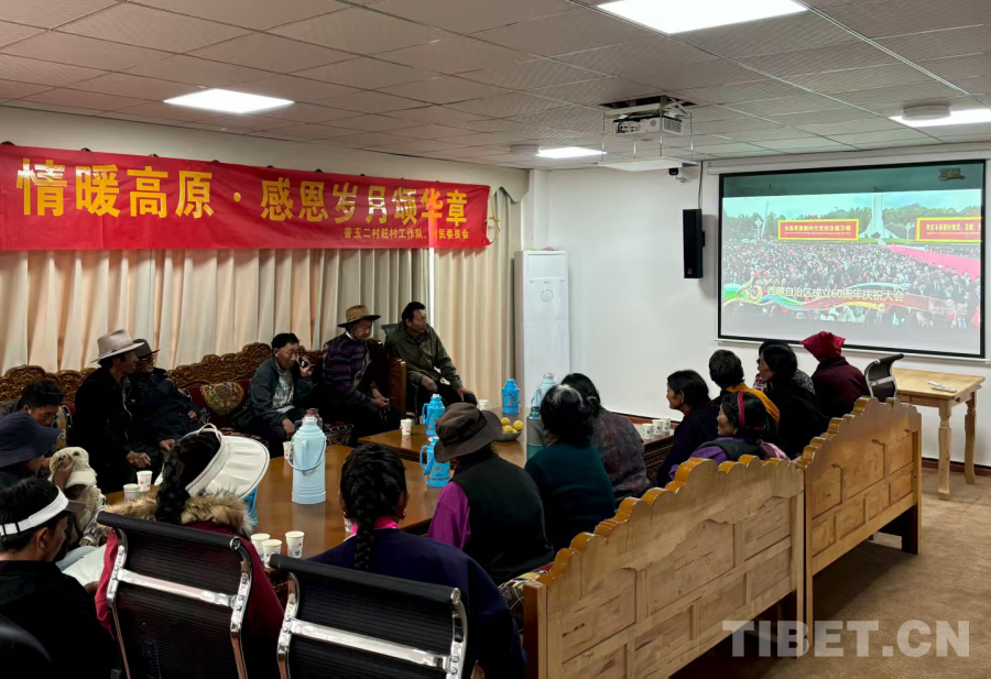圖為普玉二村村民觀看西藏自治區成立60周年慶祝大會盛況