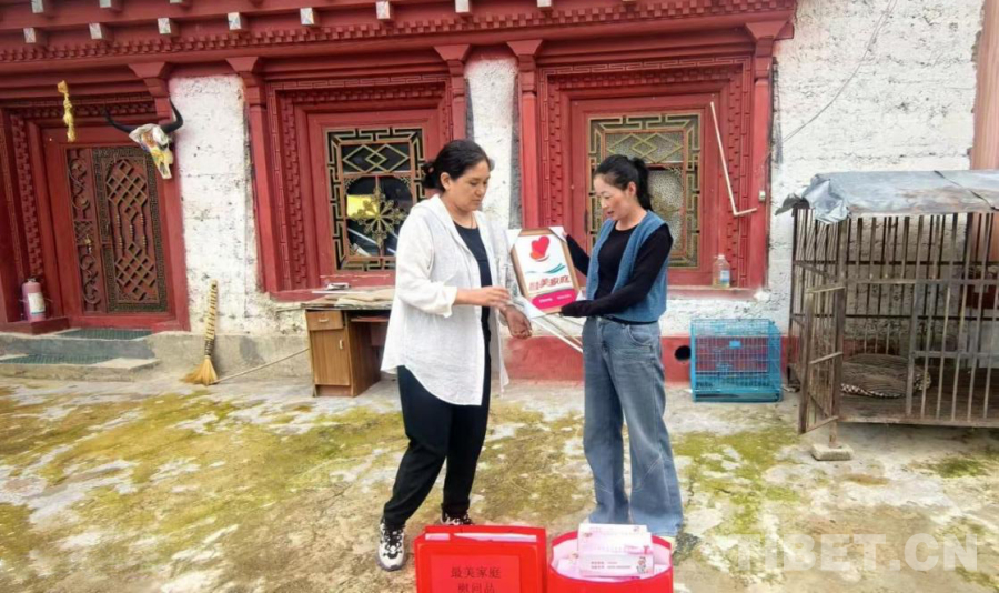 中國西藏網訊 近日,四川省甘孜藏族自治州得榮縣婦聯、縣文明辦工作人員來到太陽谷鎮松堆村,將州級“最美家庭”榮譽送到村民扎西拉姆家。這份榮譽不僅是對他們多年來在家風建設、文化傳承、公益服務中突出表現的肯定,更讓新時代文明實踐的“種子”落地生根。