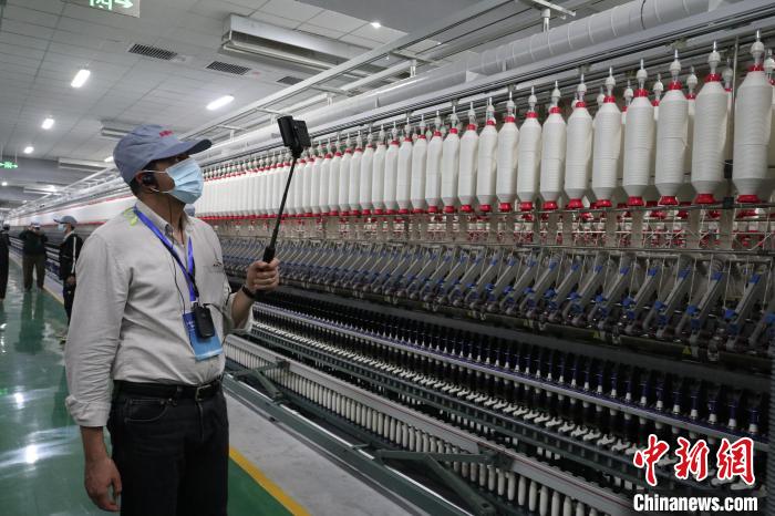 紗梭飛旋,機器輪轉,潔白的棉花紡成一簇簇紗線。在新疆尉犁縣利華紡織有限公司紡紗廠,澳大利亞“能力新聞網”總編尼古拉斯·斯圖爾特緩緩將指尖觸上待加工的棉團,短暫停留后,走向下一道工序參觀。