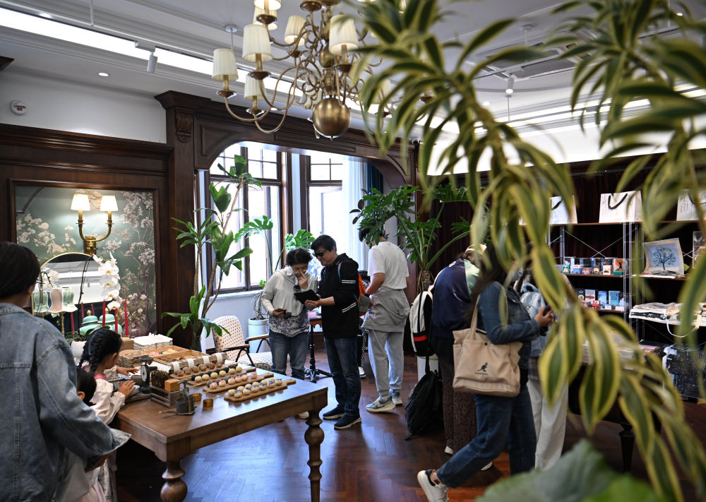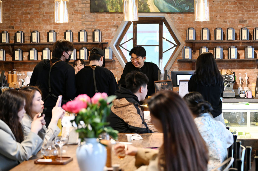 在天津市和平區五大道,一家新開業的茶飲店內顧客絡繹不絕(4月10日攝)。