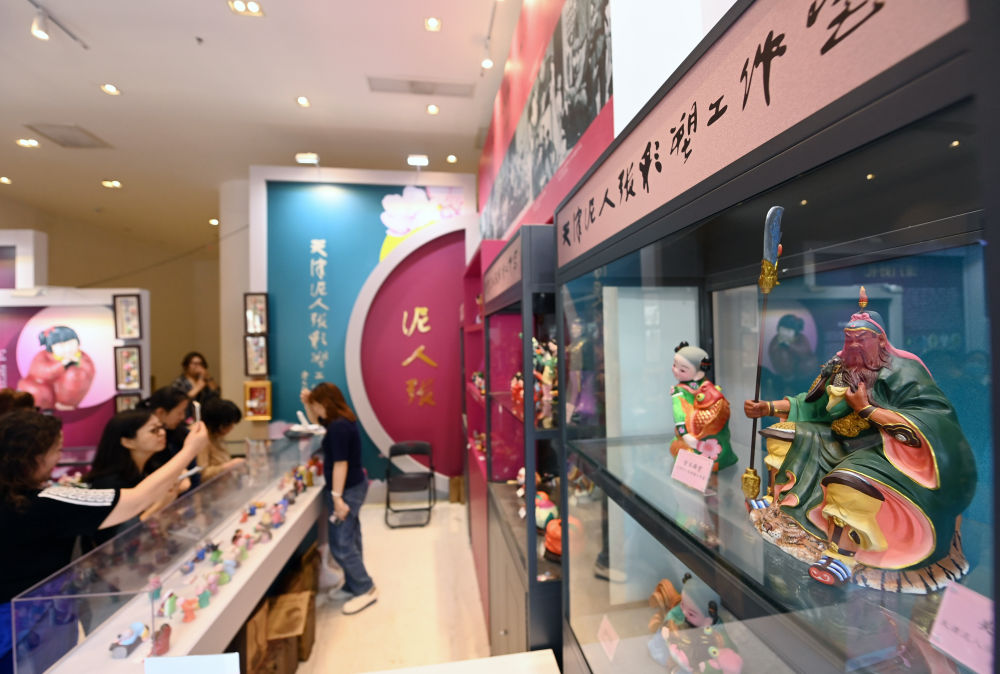 游客在位于天津五大道的一家“泥人張”店鋪內選購(4月13日攝)。