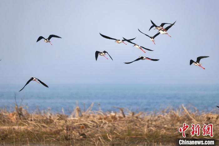 4月15日,位于新疆維吾爾自治區巴音郭楞蒙古自治州博湖縣境內的博斯騰湖迎來成群黑翅長腳鷸,它們時而緩慢涉水行走,時而自由飛翔,構成春日里一幅靈動的生態畫卷。