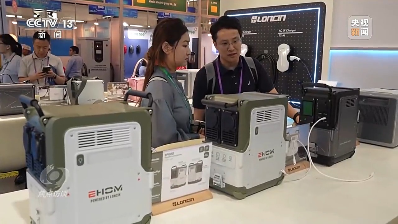 除了新能源汽車以外,記者在現場還發現,參展的鋰電池、光伏、儲能、充電樁等新能源相關企業也有很多。上海白象天鵝是生產電池的老牌國企,他們不僅針對歐美高端市場推出了“光伏+鋰電池”的儲能套餐,還特別針對非洲一些相對落后地區推出了“小而美”的解決方案。
