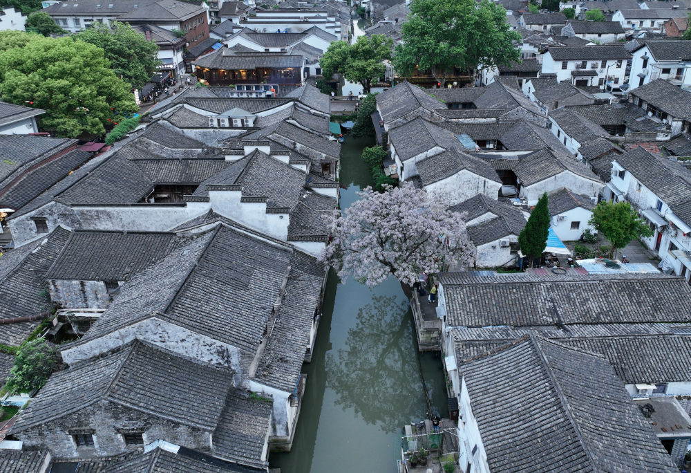 鳥瞰紹興倉橋直街(4月24日攝,無人機照片)。新華社記者翁忻旸 攝