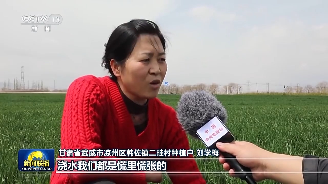 甘肅省武威市涼州區韓佐鎮二畦村種植戶 劉學梅:往年這個時間,澆水我們都是慌里慌張的。又怕澆不上水,又怕水輪次過掉了。現在用水有了保障,看到地里綠油油的麥田,心里既踏實又高興。