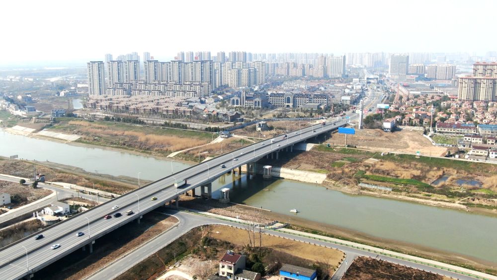 這是連接來安縣汊河鎮和南京市江北新區的汊河大橋(2023年3月2日攝,無人機照片)。新華社發(孫駿 攝)