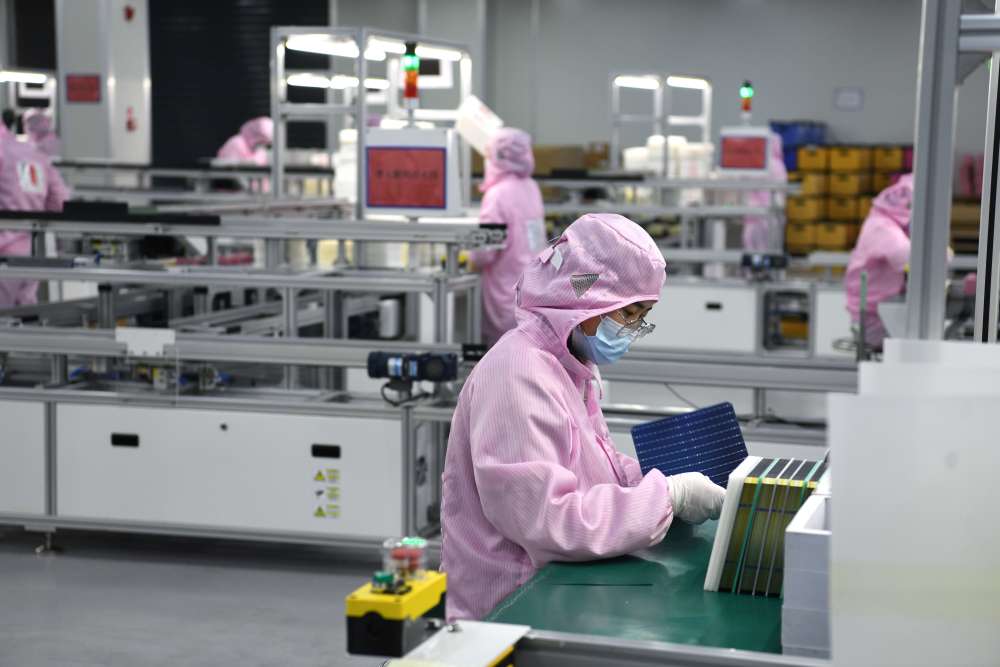 2023年3月1日,工作人員在“頂山—汊河”跨界一體化發展示范區的一家太陽能電池片企業生產線上忙碌。新華社記者 劉軍喜 攝