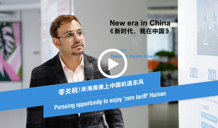 依托海南自貿港帶來的便利,巴基斯坦小伙兒吉姆(Zeeshan Qasim Khan)抓住中國機遇的東風,在海南從事國際貿易行業,并點贊海南的“零關稅”政策帶來的業務便利。