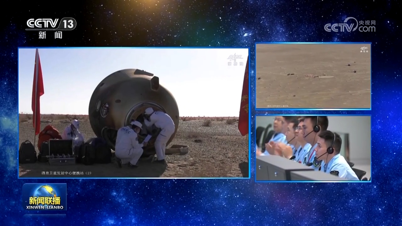 16時(shí)56分,北京航天飛行控制中心通過地面測控站發(fā)出返回指令,神舟十七號(hào)載人飛船軌道艙與返回艙成功分離。之后,飛船返回制動(dòng)發(fā)動(dòng)機(jī)點(diǎn)火,推進(jìn)艙與返回艙分離,返回艙成功著陸,擔(dān)負(fù)搜救回收任務(wù)的搜救分隊(duì)及時(shí)發(fā)現(xiàn)目標(biāo)并抵達(dá)著陸現(xiàn)場。返回艙艙門打開后,醫(yī)監(jiān)醫(yī)保人員確認(rèn)航天員身體健康。