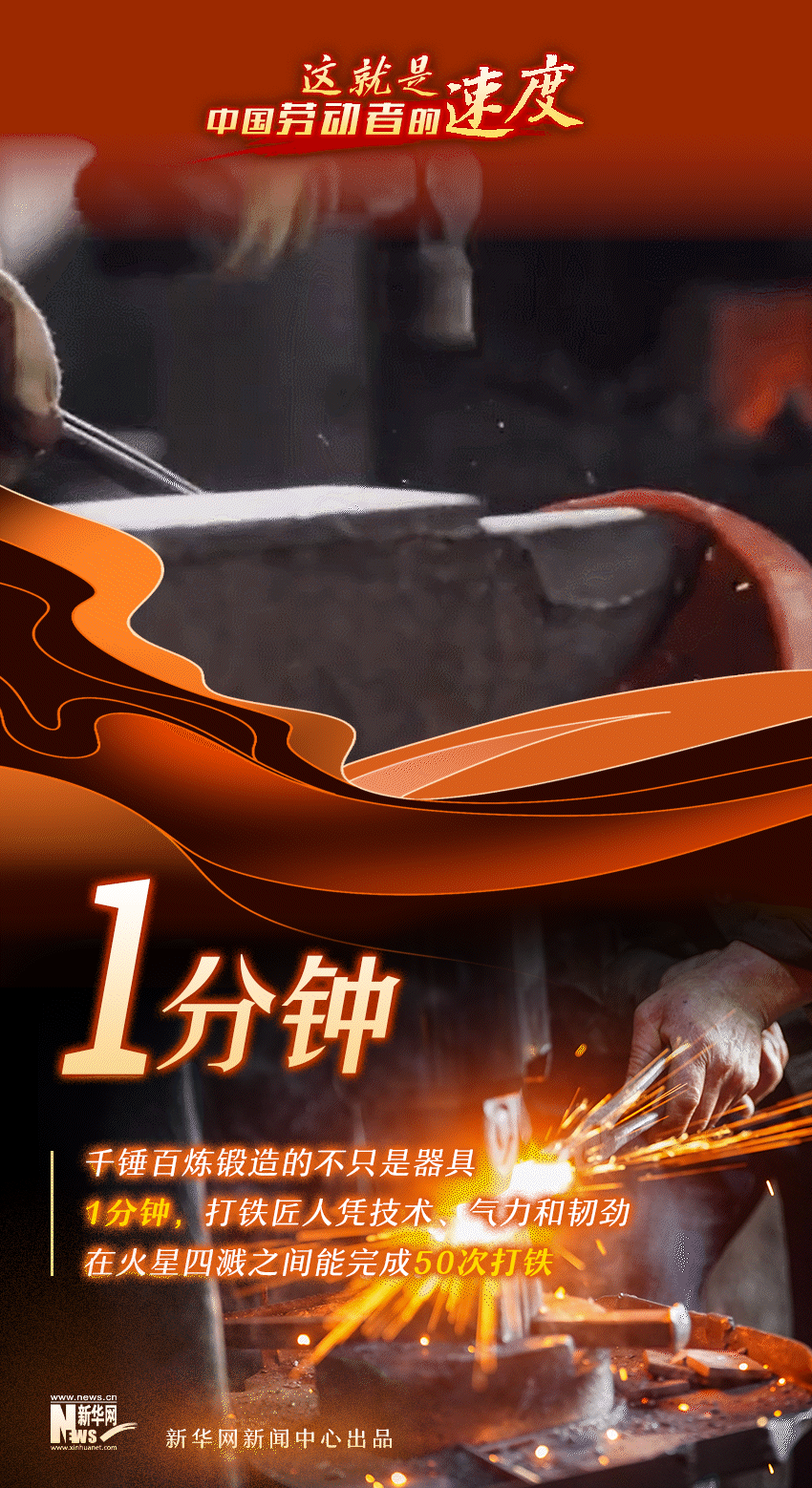 1分鐘,在火星四濺的環境里,打鐵匠人能打鐵50次;
