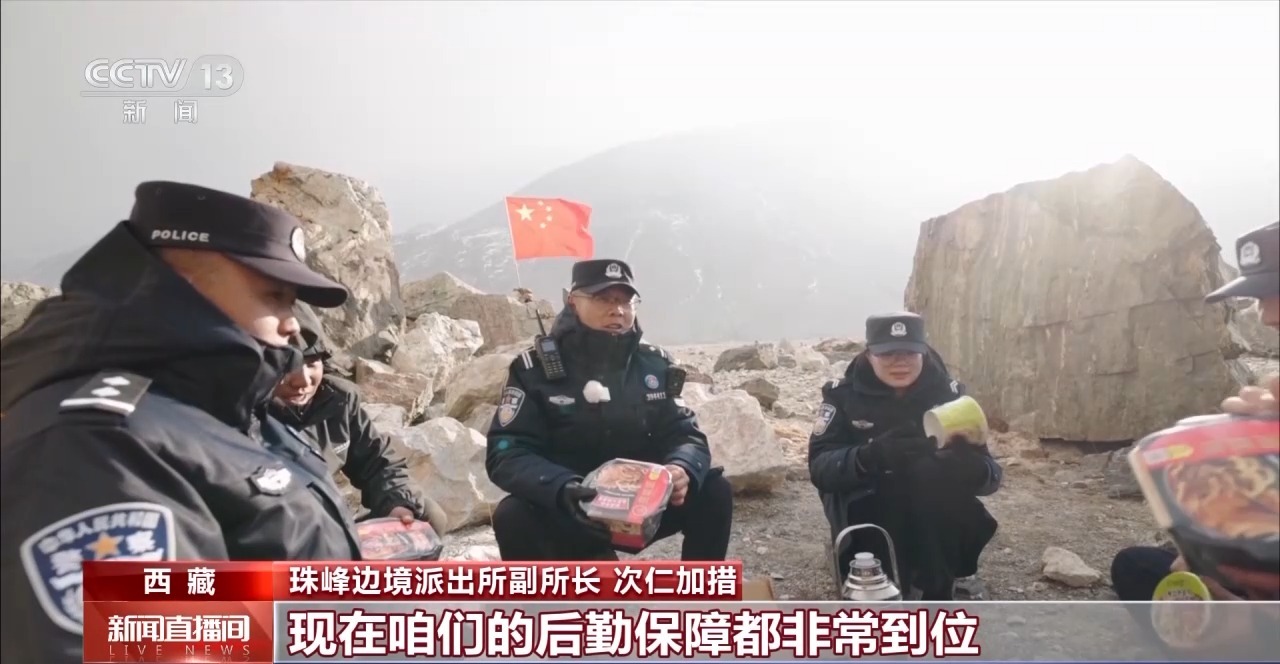珠峰邊境派出所副所長 次仁加措:這里風是挺大的。但咱們有“法寶”,就是高原上的火鍋。現在后勤保障非常到位,在野外哪個地方,吃頓熱乎飯已經不是難事了。