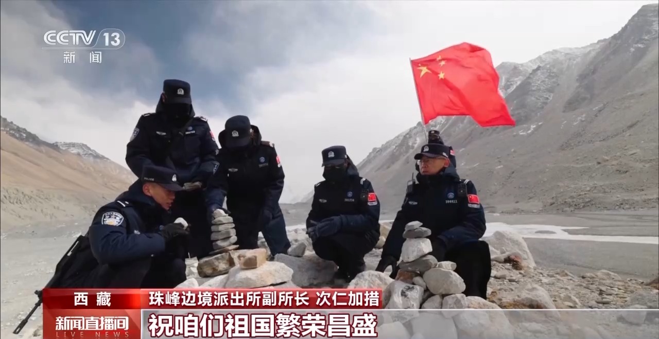 珠峰邊境派出所副所長 次仁加措:我們每次到這個地方,有一個儀式,就是把石頭壘在這里,表達我們的祝福。祝祖國繁榮昌盛,也祝我們心想事成。