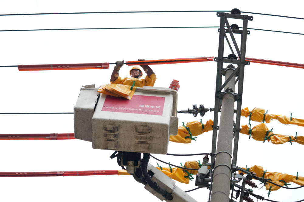 4月24日,賀彪在湖南省長沙市岳麓區一小區開展帶電作業。新華社記者 薛宇舸 攝