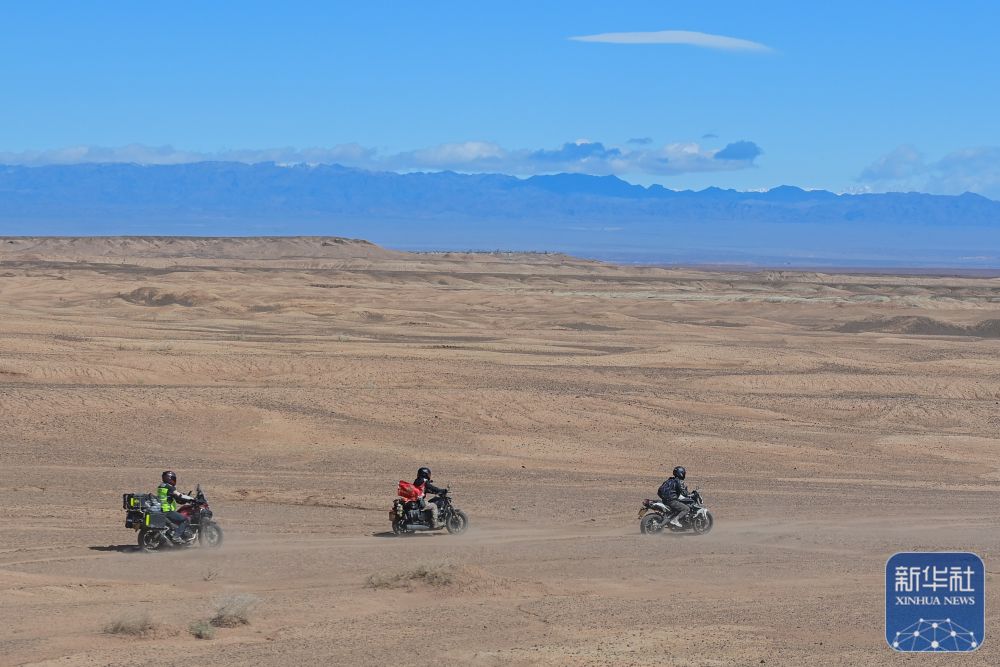 在新疆克拉瑪依市烏爾禾區,車友在無人區體驗越野騎行(5月2日攝)。