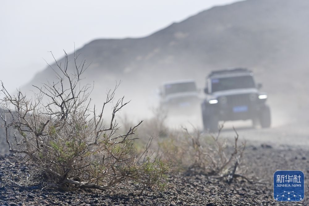 在新疆克拉瑪依市烏爾禾區,車友駕駛越野車穿越無人區(5月2日攝)。