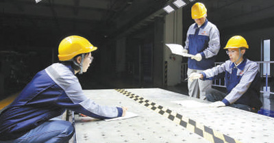 江蘇省蘇州高新區(qū)蘇高新股份下屬企業(yè)世力源總工程師溫晶晶(右一)與同事開展設計試驗。 本報記者 王偉健攝