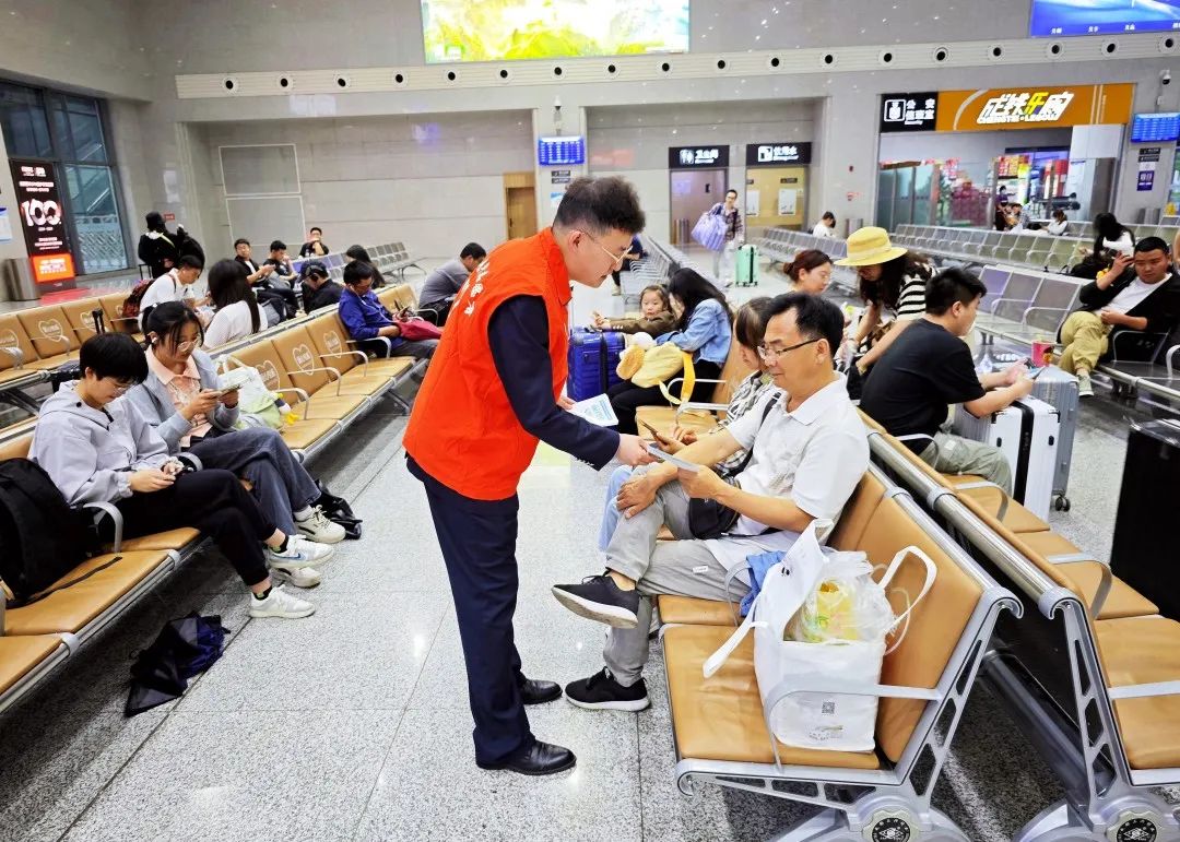 上海局集團公司杭州東、杭州、杭州南、杭州西站每日安排120名志愿者提供引導和問詢解答服務,針對客流集中的重點車次和時段,采取適當提前檢票、動態優化候車區域旅客分布、增加安檢口雙人手檢力量等措施,服務旅客順暢出行。