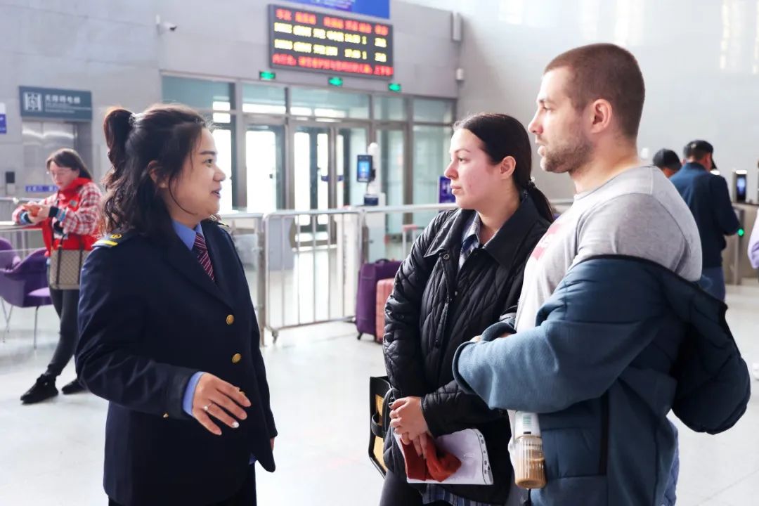 綏芬河站更是在國際聯運的一線發揮著不可或缺的作用。哈爾濱局集團公司針對假期綏芬河口岸外籍跨境游旅客增多的實際,組織翻譯員工成立志愿服務小隊,為外國旅客提供雙語服務。