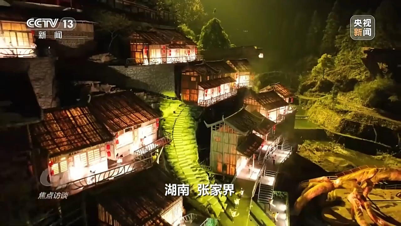 今年“五一”,湖南張家界天門山景區的大型山水實景音樂劇《天門·狐仙》以實景山水為背景,融合聲、光、電、AI技術與裸眼3D,吸引了大批韓國游客觀看。