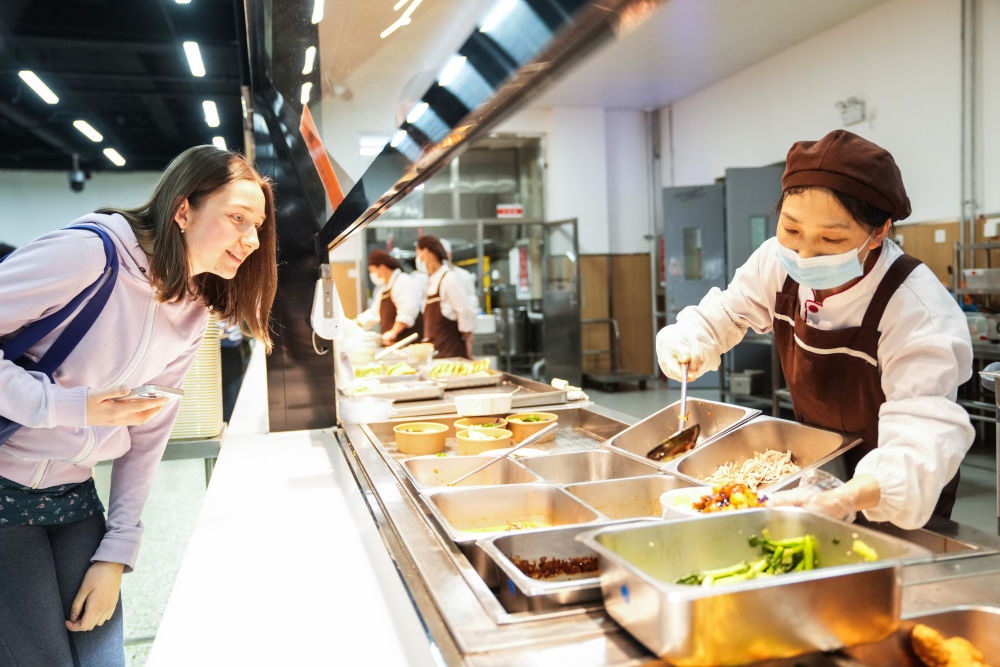 胡靈月在北京首都師范大學的食堂內打飯(2024年4月28日攝)。