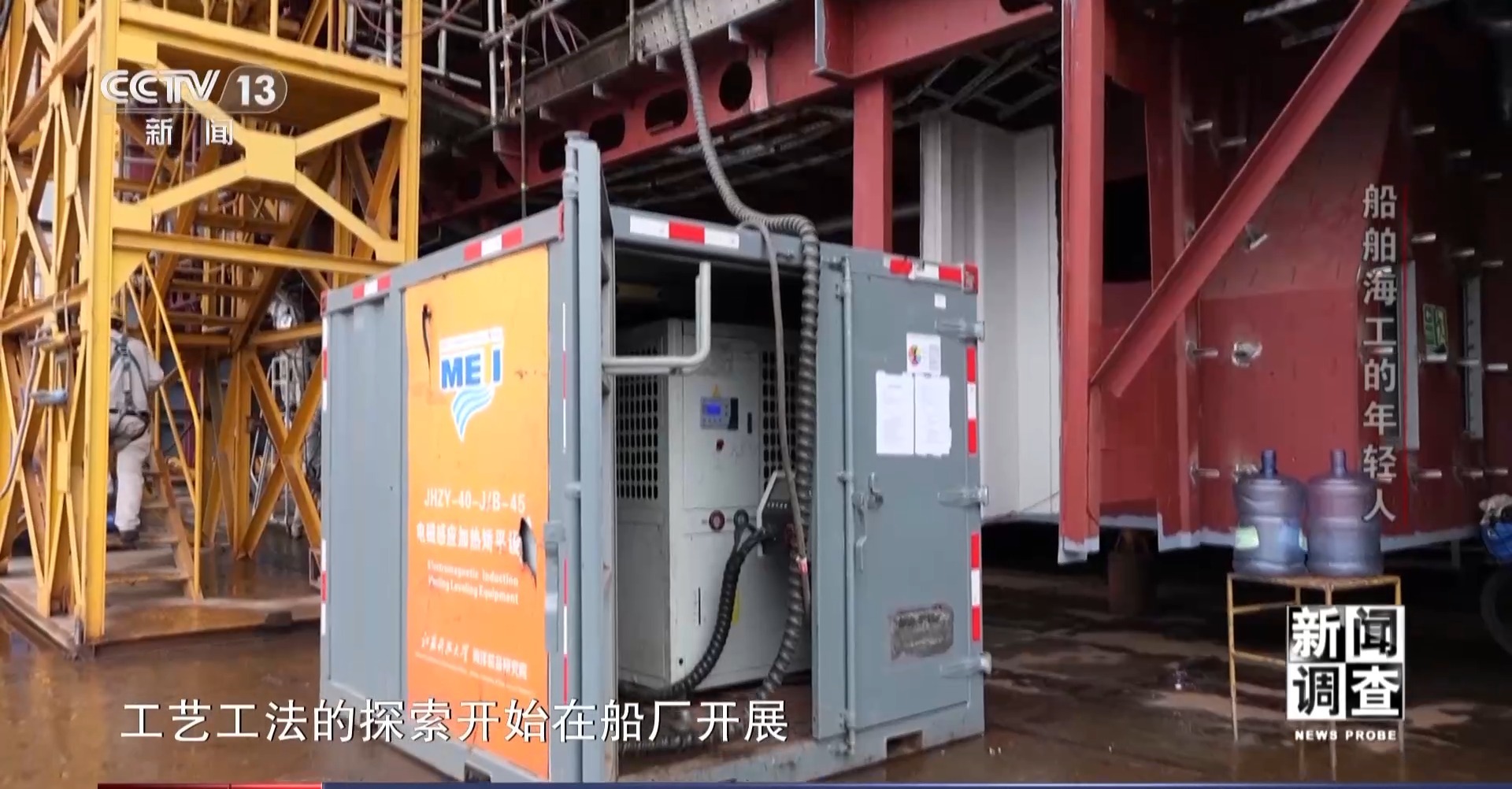 江蘇科技大學海洋裝備研究院工藝及成形技術研究所所長 許靜:這種高頻電在長距離的輸送過程中衰減是非常厲害的,比如以前可能有很多廠家做到10米、15米,但它做不到60米。大型的船舶一般來說都是分段建造的,每個分段都是比較大的尺寸和結構。作業半徑越大,就意味著整個設備的作業效率越高,可以覆蓋的范圍就越寬。一旦長度超過30米以上,這個衰減幾乎是呈指數倍地往下降,等長度達到60米的時候,從電能到最后能產生熱能,這個效率可能就降低到30%以下了。