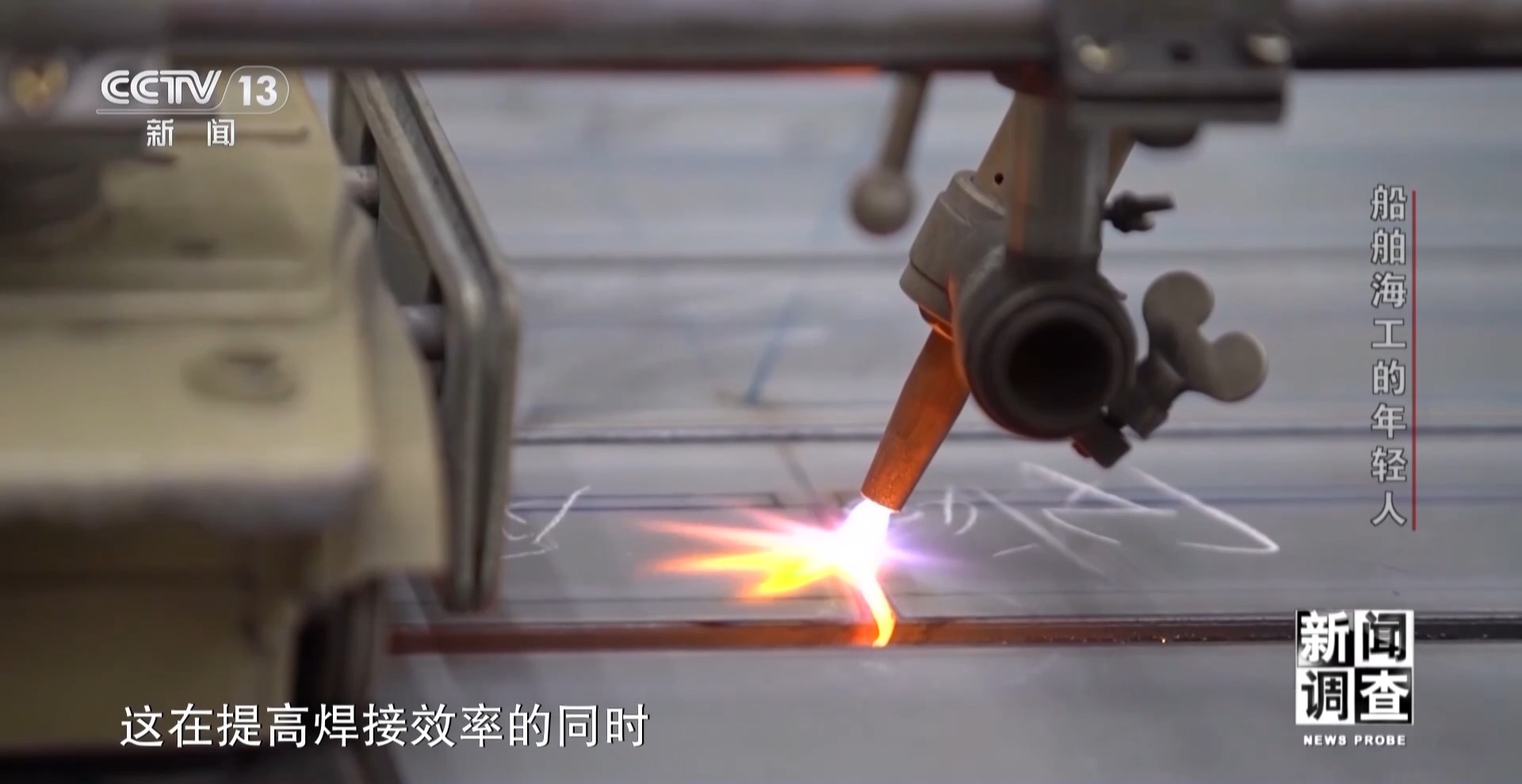 上海外高橋造船有限公司精度技術部高級工程師 鄧琳:一方面焊接效率高了,把熱量用在刀刃上了。第二它不會影響非焊縫區域的熱循環,激光能把溫度集中在非常細的、窄的一條線上,就不會影響邊上的變形。