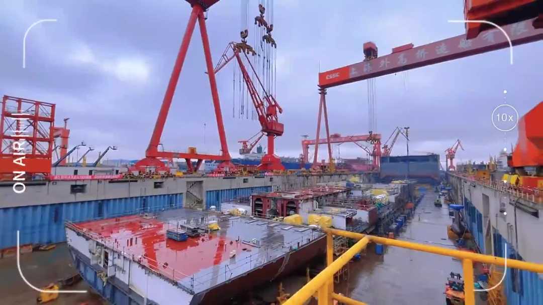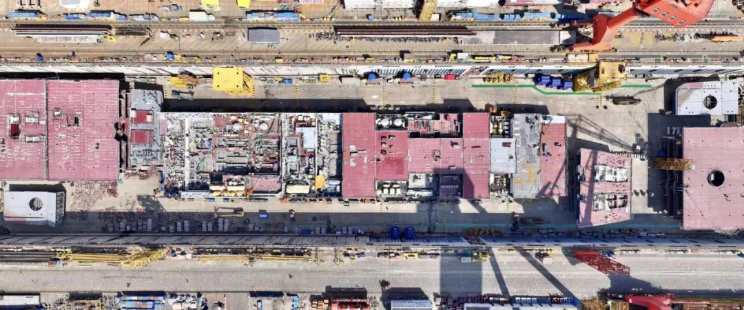俯瞰第二艘國產大型郵輪搭載總裝現場。陸佳駿 攝