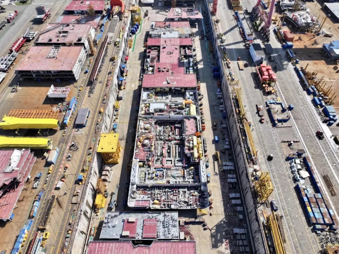 相較于首制船,第二艘郵輪“尺碼”更大、設備更先進,船上配置了16層的龐大上層建筑生活娛樂區域,通過優化設計布局,公共區域和戶外活動休閑區域面積增加,乘客舒適度和體驗感進一步提升。根據計劃,該船入塢后將圍繞船體制作、搭載、區域舾裝等開展建造工作,2025年基本完成艙室推艙及內裝安裝,2026年3月底出塢,當年6月開始試航,年底前命名交付。