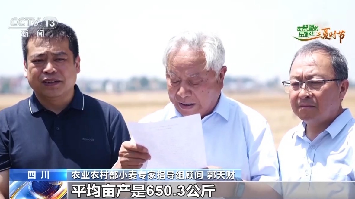 農業農村部小麥專家指導組顧問 郭天財:我們按照加權平均,平均畝產是650.3公斤,應該說創造了四川省百畝連片的最高紀錄。