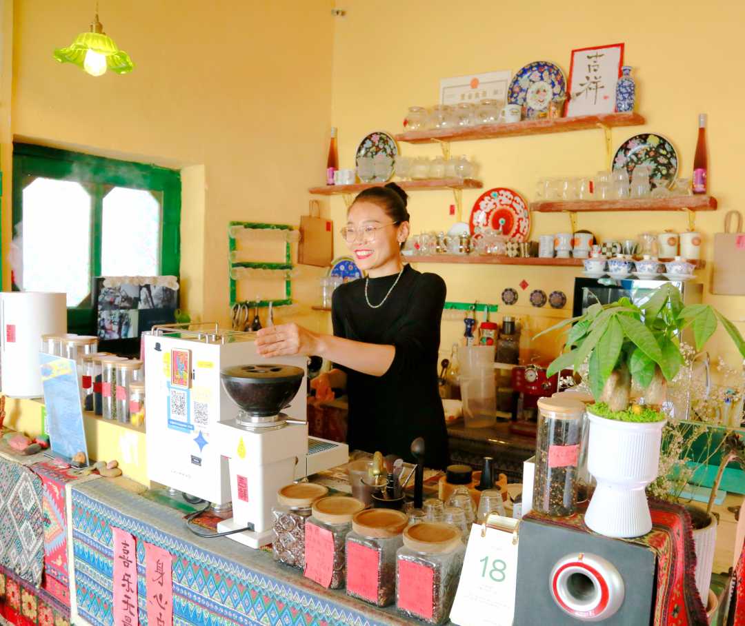 “這里的生活氣息深深打動了我。”一次庫車旅行,讓張媛媛下決心留下來創(chuàng)業(yè)。她在熱斯坦歷史文化街區(qū)開了一家咖啡館,色彩鮮明的裝修、時尚氣息的裝飾,使小店很快成為當?shù)芈糜蔚男×咙c。