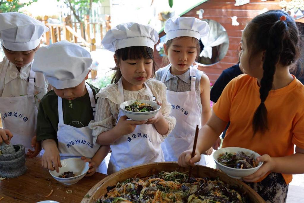 洗菜、烙餅、烤麥子、包餃子、磨豆漿……初夏時節,江蘇省徐州市徐海路幼兒園煙火氣升騰,教室外的小院好不熱鬧。