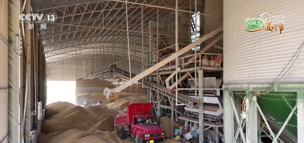 在河南南陽,麥收工作已基本結束。這是南陽鄧州市羅莊鎮的一家糧食收購點,種植戶們把剛剛收割完的小麥直接從田里拉來售賣。水分較低的糧食會直接收到倉庫中,水分較高的糧食則卸在晾曬場中,由烘干設備進行烘干。