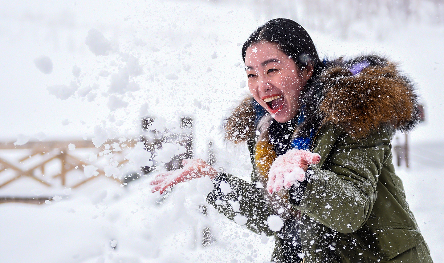 長白山景區內玩雪的游客。 記者 王昊飛 攝