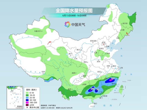 后天,黑龍江東北部、江南大部、西南地區南部、華南大部等地部分地區有中到大雨,其中,江西中東部、福建西北部、廣西東北部、廣東西北部等地部分地區有暴雨或大暴雨。