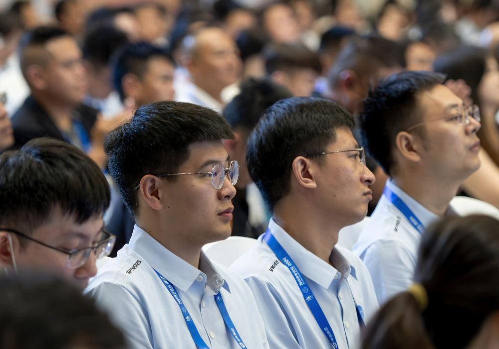 來自臺灣的青年們在第二十二屆海峽青年論壇開幕現場(6月14日攝)。新華社記者 魏培全 攝