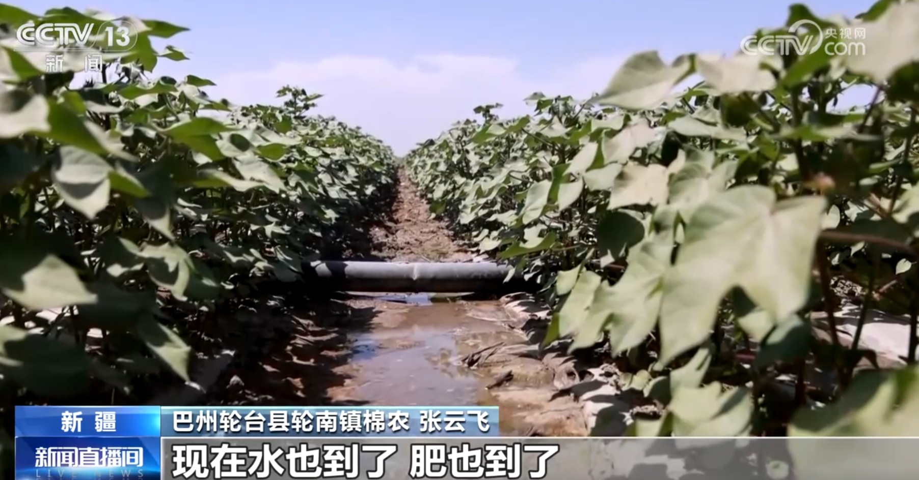 巴州輪臺(tái)縣輪南鎮(zhèn)棉農(nóng)張?jiān)骑w稱:“現(xiàn)在正是對(duì)水肥需求的高峰期,正好塔里木河的水來得非常及時(shí),現(xiàn)在水也到了,肥也到了,棉花長(zhǎng)勢(shì)非常好。”