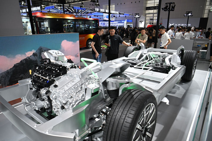 這是在博覽會現場拍攝的一款智能網聯汽車平臺架構(6月20日攝)。新華社記者 孫凡越 攝