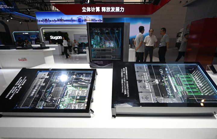 這是6月20日在博覽會上拍攝的中科曙光展區的一臺人工智能服務器。新華社記者 趙子碩 攝