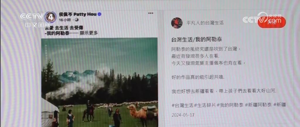 從廣袤無垠的戈壁沙漠到壯麗的天山山脈,再到碧綠的喀納斯湖,新疆的雄偉壯觀的自然美景和豐富多樣的人文風(fēng)情在臺灣經(jīng)常通過各類旅游論壇、網(wǎng)紅游記的分享廣為傳播。而這段時間新疆旅游之所以在臺灣更加火爆,不得不提的就是這部在臺灣也引發(fā)很多關(guān)注的電視劇《我的阿勒泰》。在社交媒體上有臺灣劇迷分享追劇感想,也引來大陸網(wǎng)友熱情分享新疆的美景美食。