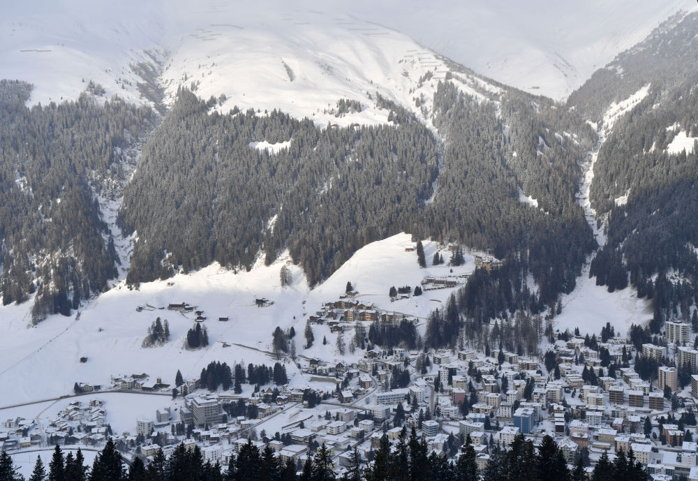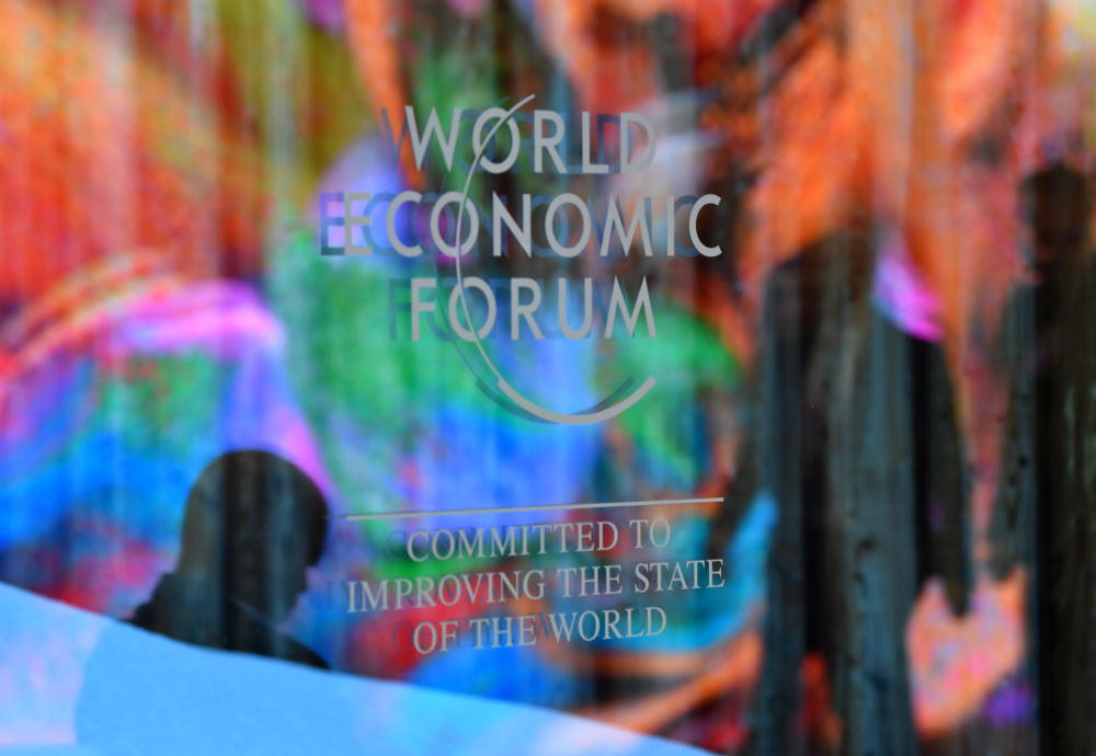 ↑在瑞士達(dá)沃斯拍攝的世界經(jīng)濟(jì)論壇標(biāo)識(shí)。