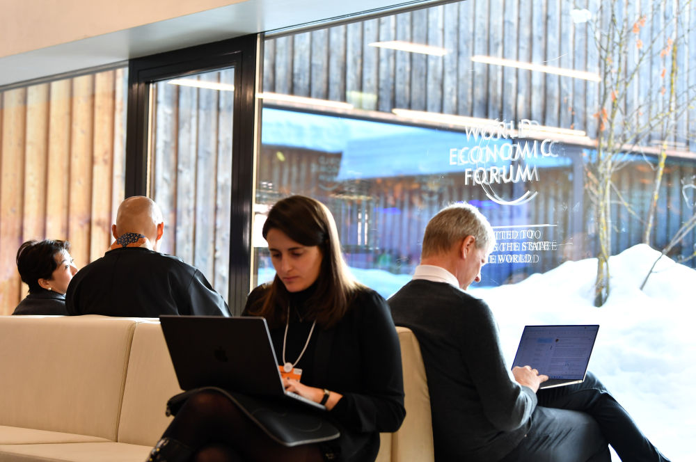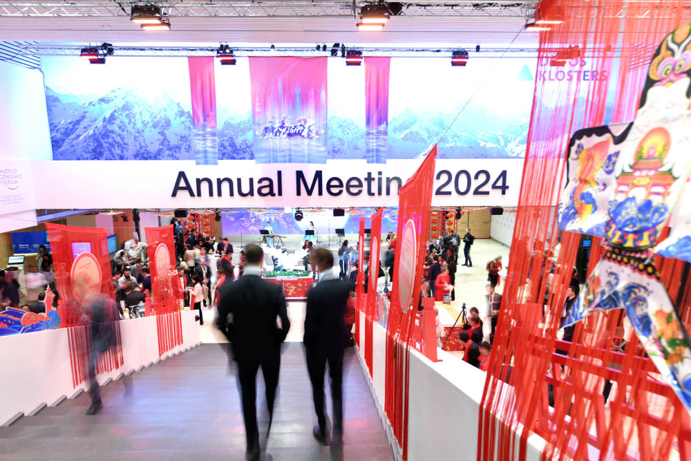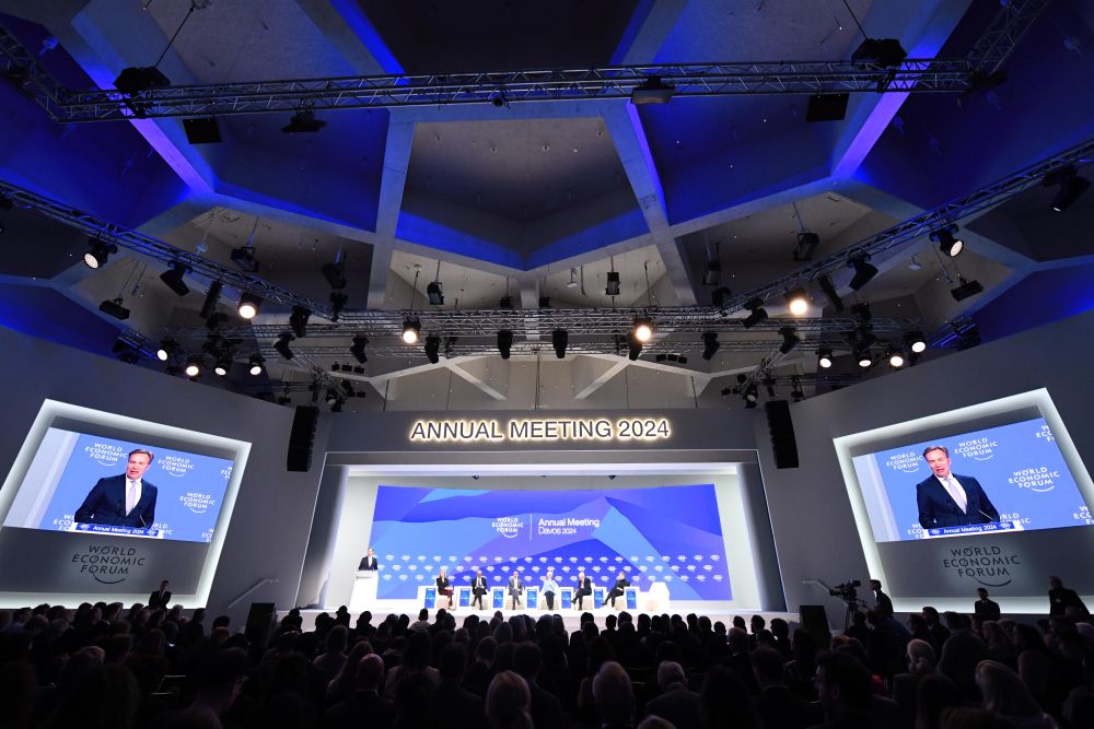 ↑在瑞士達(dá)沃斯舉行的世界經(jīng)濟(jì)論壇2024年年會(huì)現(xiàn)場。