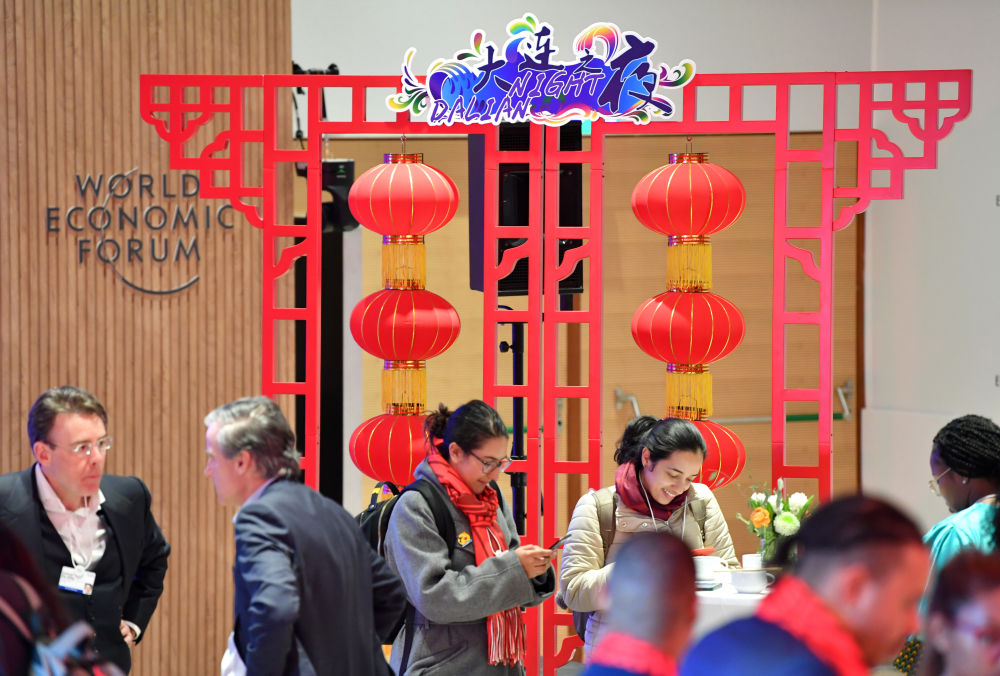 ↑2024年1月16日,與會(huì)者在瑞士達(dá)沃斯參加“大連之夜”招待會(huì)。