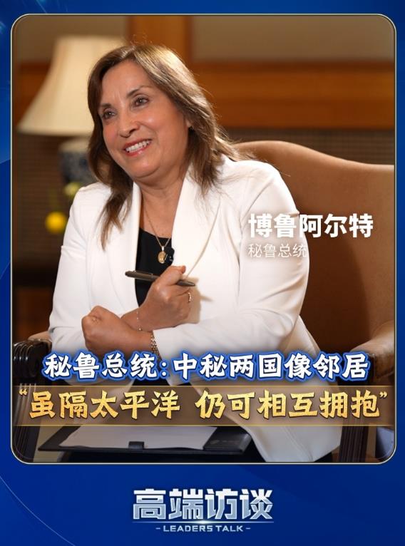 6月28日下午,國家主席習近平在人民大會堂同來華進行國事訪問的秘魯總統博魯阿爾特舉行會談。今天上午,博魯阿爾特在接受總臺《高端訪談》獨家專訪時表示,秘魯和中國在心靈上是很親近的鄰居,隔著太平洋仍可相互擁抱。