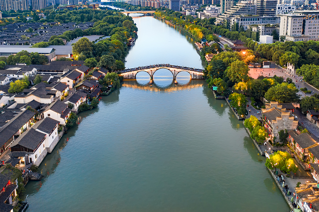 2022年,京杭大運河時隔百年,再次實現(xiàn)了全線通水,也為未來的全線通航提供了可能性。如今的運河,舊貌如舊,新顏煥新。在北京,運河商務(wù)區(qū)與見證千年漕運的燃燈塔比鄰而立,現(xiàn)代金融服務(wù)產(chǎn)業(yè)鏈和總部經(jīng)濟蓬勃發(fā)展;在揚州,中國大運河博物館游人如織,“5G+VR”技術(shù)讓人身臨其境;在杭州,小河直街的游客頭頂宋制簪花,運河旁的體育場館辦成亞運賽事……大運河保護,并不是讓經(jīng)濟發(fā)展讓位于文化傳承,而是讓運河文化吸引人氣、聚集活力,成為新的經(jīng)濟增長點。