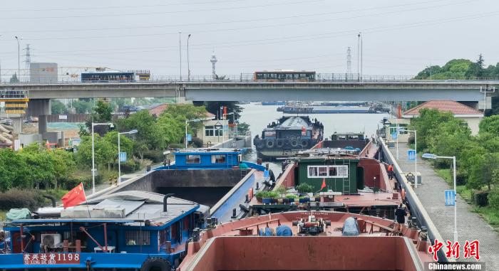 張濤介紹,之前蘇南蘇北運河標(biāo)準(zhǔn)不一,過大船只無法駛?cè)胩K南段運河,需在長江過駁,把大船上的貨物通過小船分運。改造完成之后,南北可以統(tǒng)一通航,既大大提高通航效率,也對長江的生態(tài)環(huán)境起到重要保護(hù)作用。