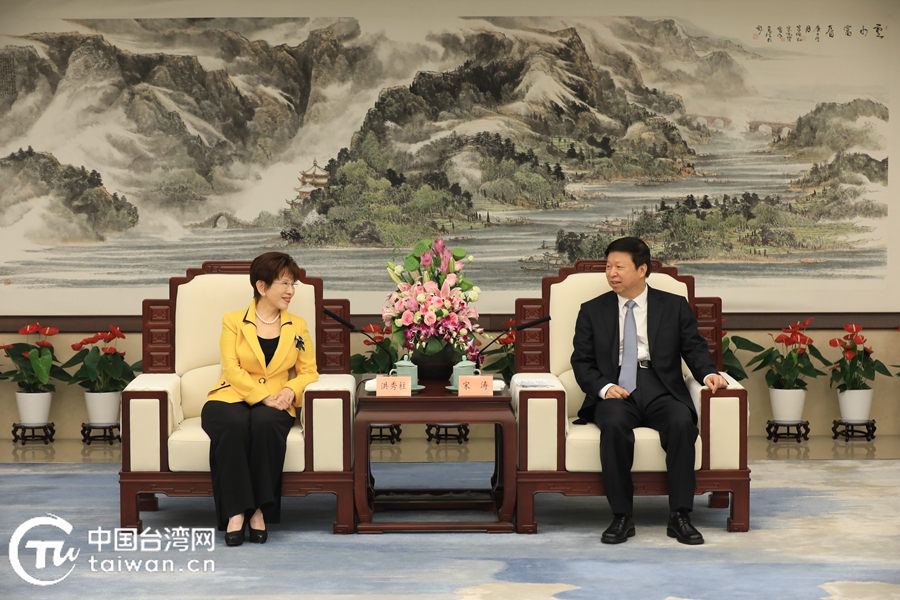 宋濤轉達了習近平總書記對洪秀柱的問候。宋濤表示,習近平總書記去年向第六屆海峽兩岸青年發展論壇致賀信,充分體現了對兩岸青年的關心關愛和殷切期望,為兩岸青年交流合作指明了方向。我們將深入貫徹落實習近平總書記賀信精神,促進兩岸青年互學互鑒、交流交心,希望兩岸青年把握歷史大勢,堅守民族大義,堅決反對“臺獨”分裂和外來干涉,積極參與兩岸交流合作、融合發展,在中國式現代化的光明前景中創造青春業績,在祖國統一、民族復興的偉大征程上實現人生價值。