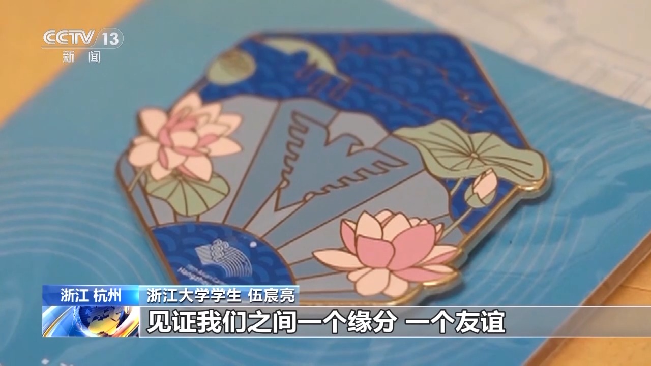 浙江大學學生 伍宸亮:這個徽章是浙江大學在去年的杭州亞運會、亞殘運會期間為志愿者設計的一個專屬的徽章,在徽章設計的過程中,它是全由我們同學自己設計的,也希望以這枚徽章,見證我們之間的緣分和友誼。
