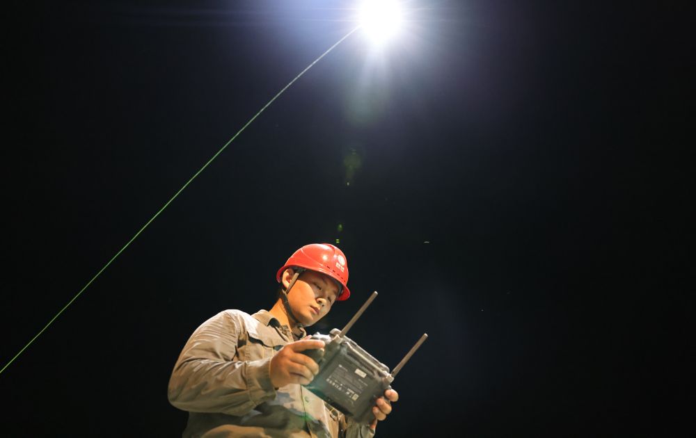 在堵口作業(yè)現(xiàn)場(chǎng),劉子翔負(fù)責(zé)操作系留式無(wú)人機(jī),為施工人員提供夜間照明。他時(shí)刻注意風(fēng)向、風(fēng)速,根據(jù)施工人員的需求,及時(shí)調(diào)整無(wú)人機(jī)的位置,確保“照得見(jiàn)、照得亮”。
