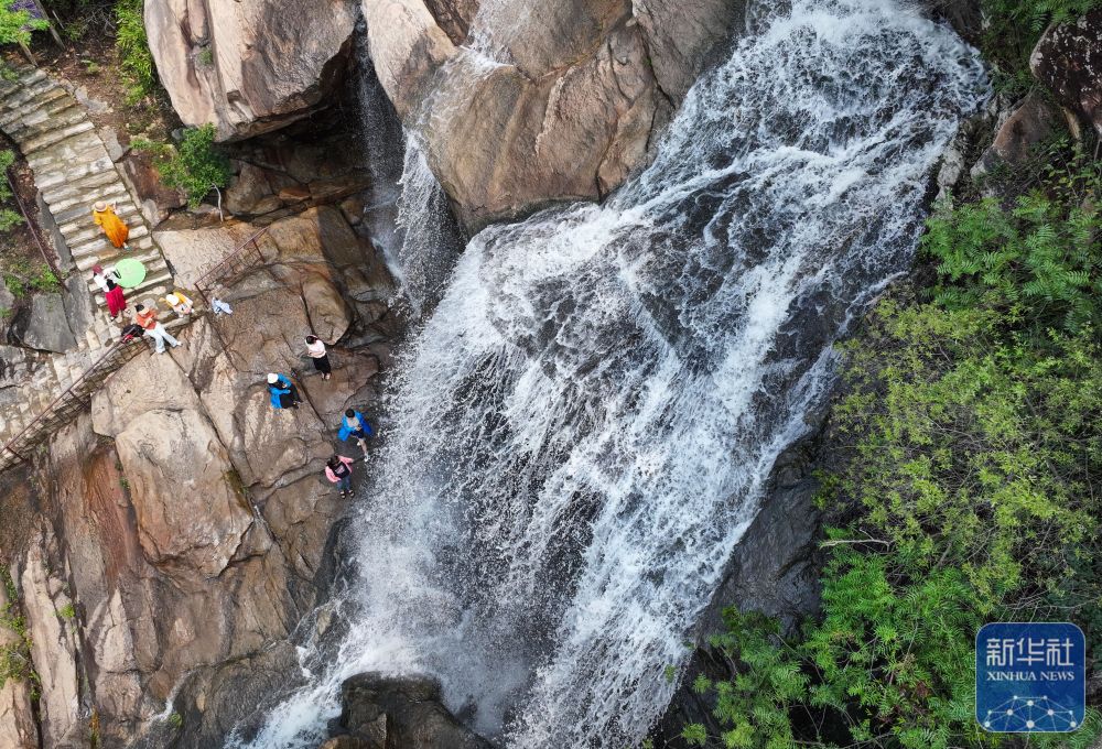 7月10日,游客在江蘇省連云港市連云區宿城街道東崖屋村游玩(無人機照片)。新華社發(王健民 攝)