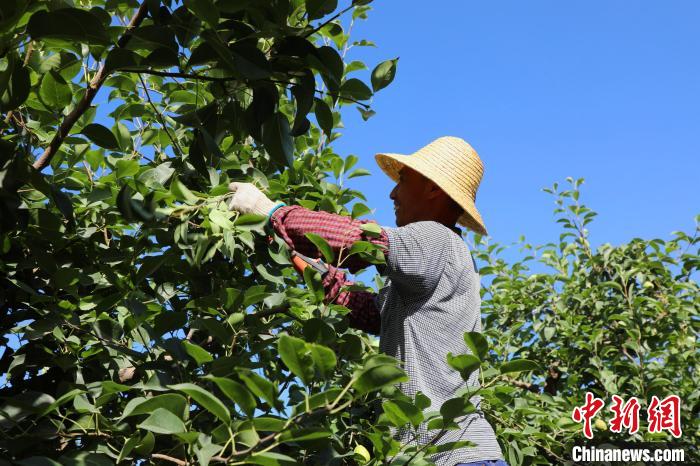 “入夏以來(lái),為了讓果樹(shù)把營(yíng)養(yǎng)集中到果實(shí)成熟上,我們需要把多余的枝條給剪掉。”工人趙開(kāi)昆說(shuō),5月下旬就開(kāi)始在香梨園里陸續(xù)修剪。